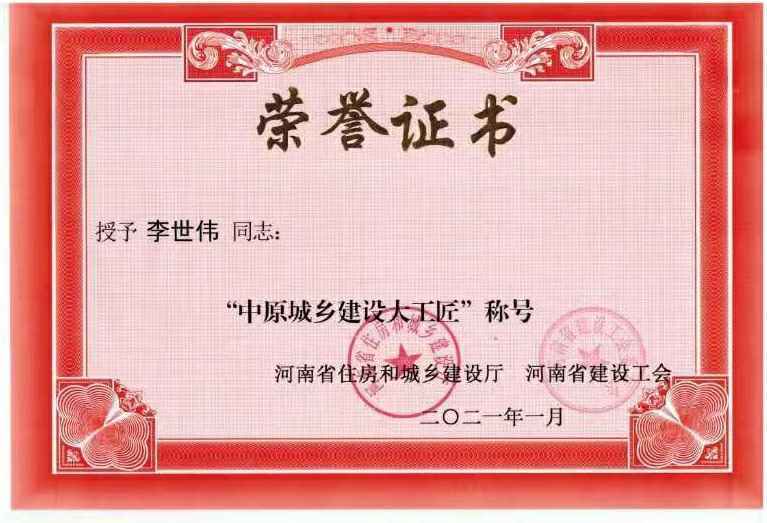 九游体育·九游官方网站-九游体育(中国)李世伟同志获“中原城乡建设大工匠”称号