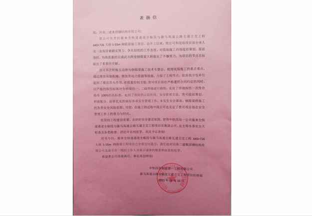 中铁四局集团第一工程有限公司向九游体育·九游官方网站-九游体育(中国)发来表扬信
